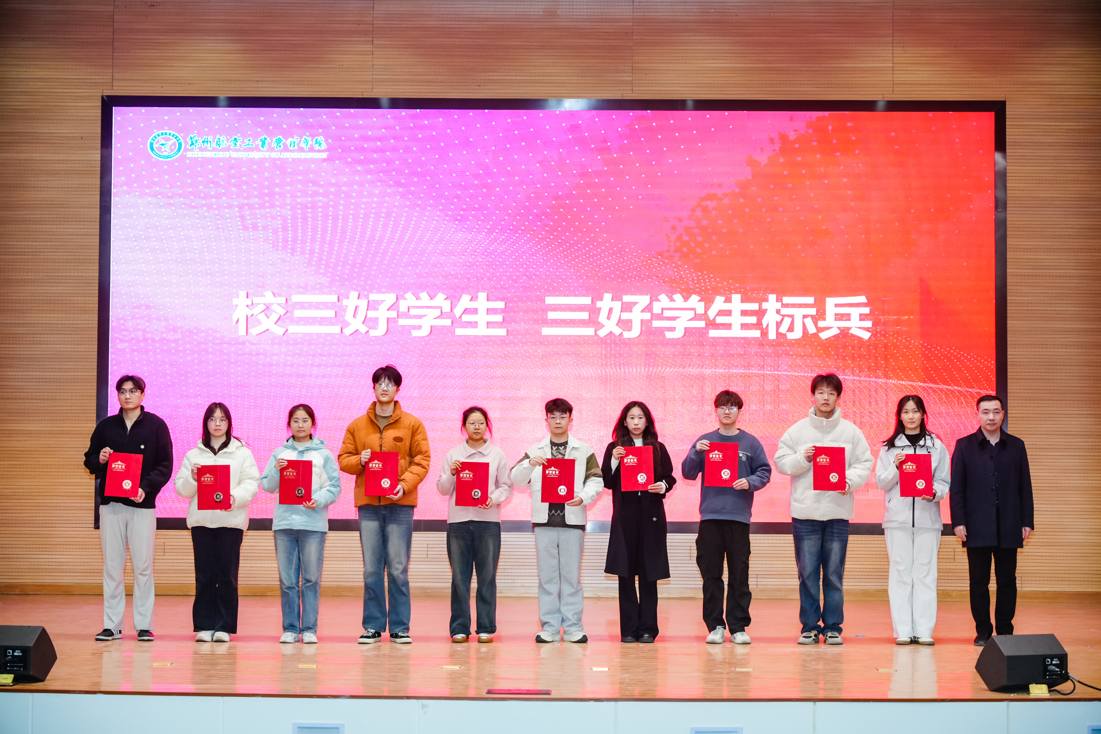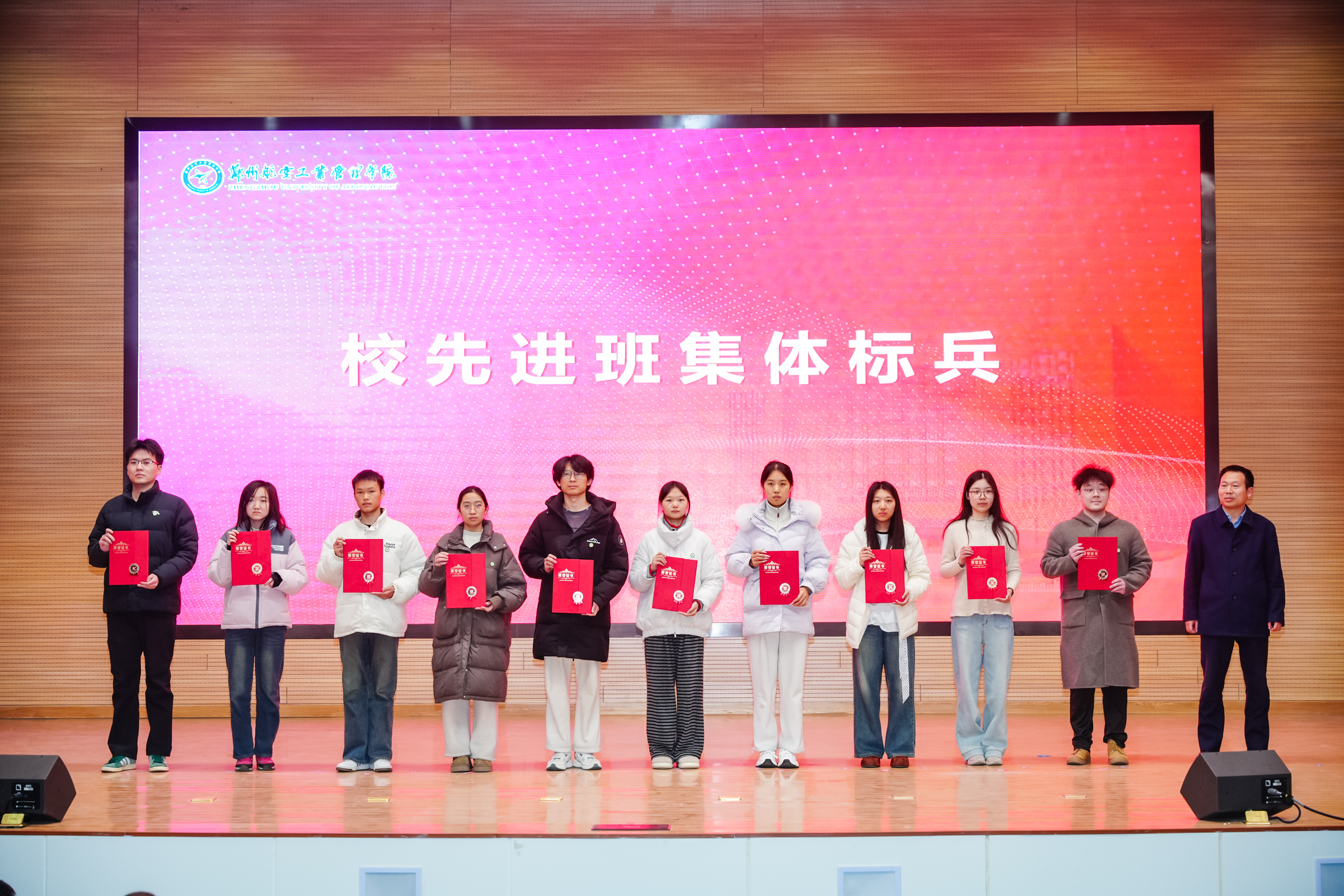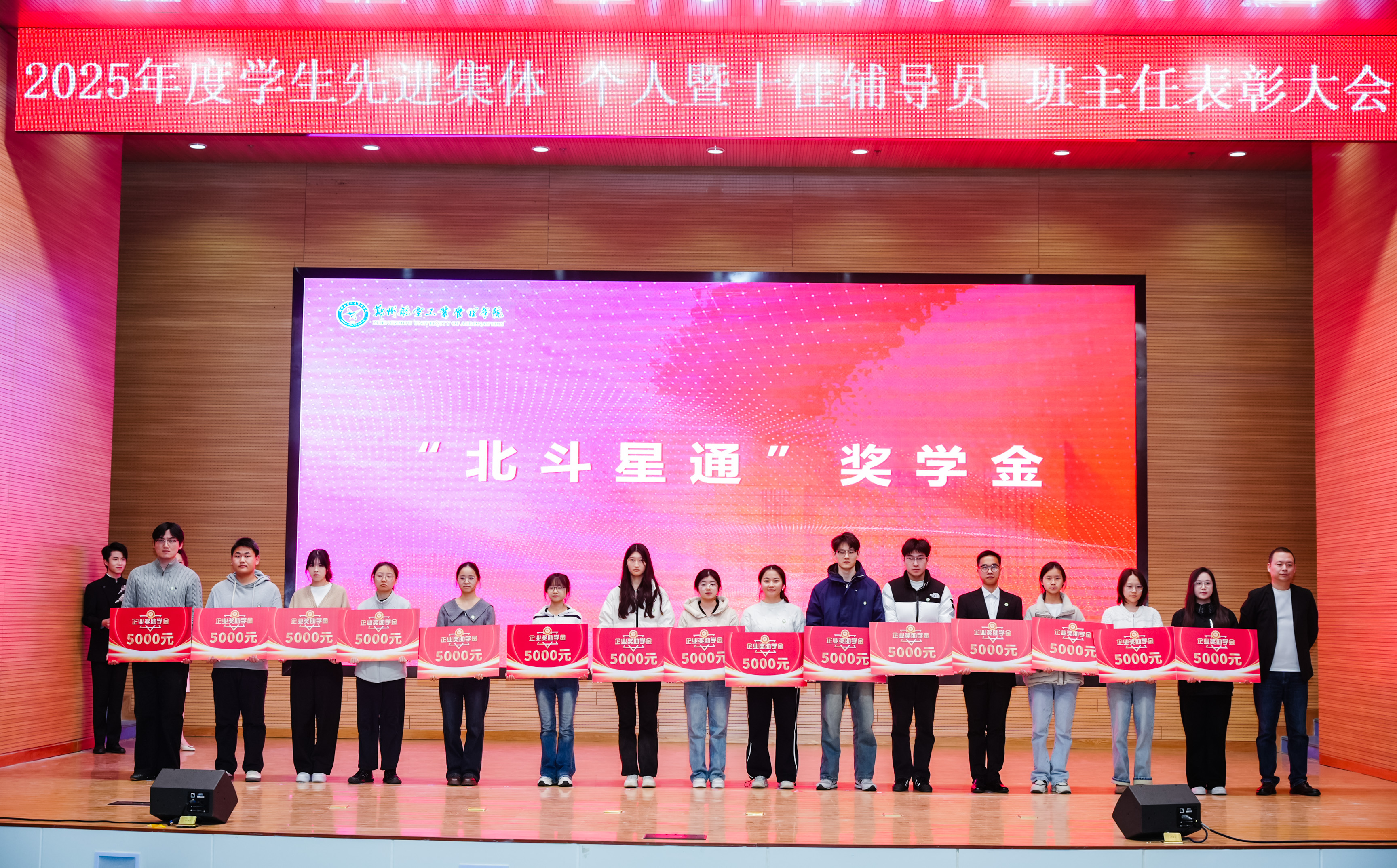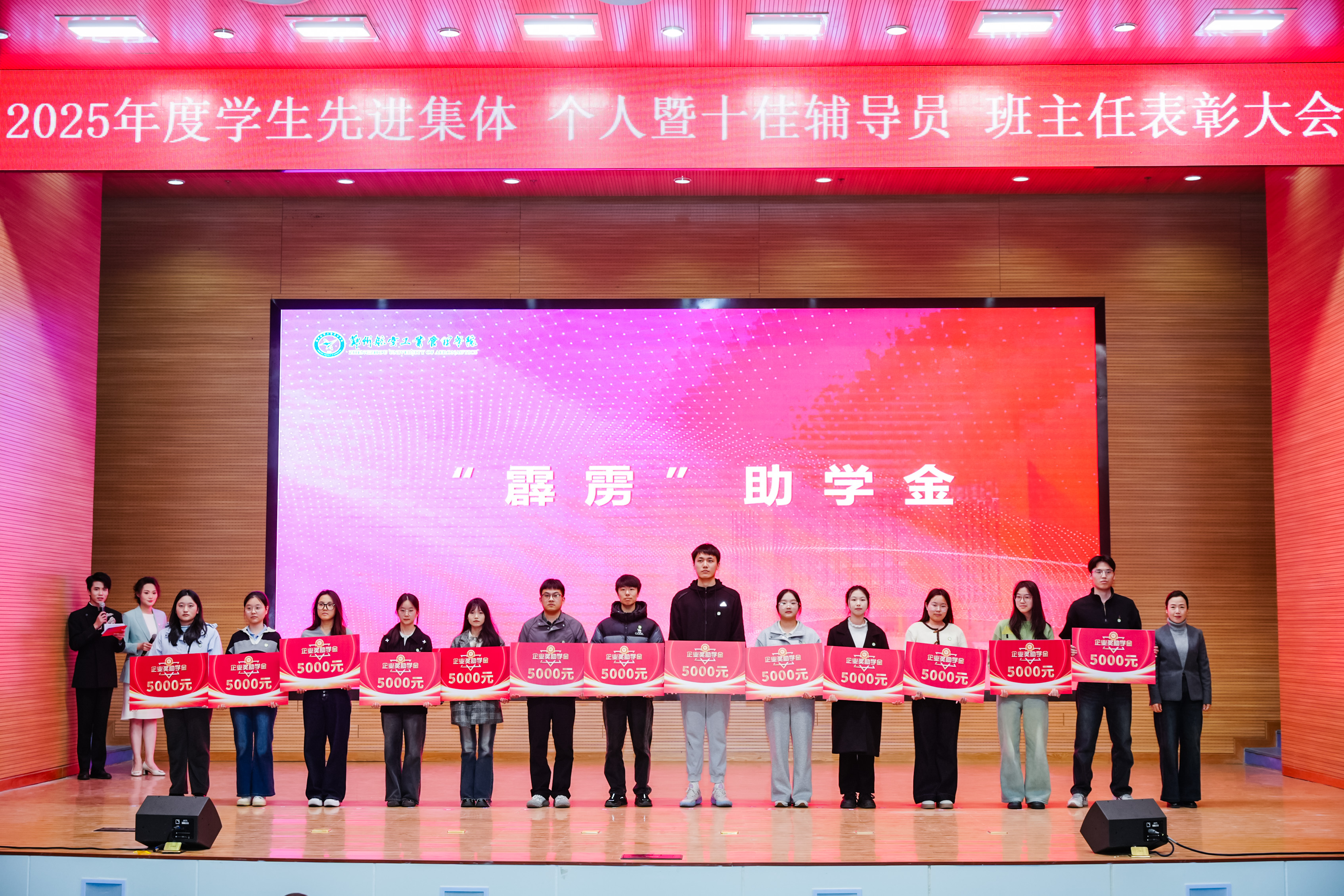校党委副书记李广锋在致辞中对受表彰的先进集体与优秀个人表示热烈的祝贺,向长期坚守在学生工作一线、为学校人才培养辛勤付出的全体学工同仁表示崇高敬意,向长期情系空天教育、鼎力支持学校发展的爱心企业表示由衷感谢。他指出,学校正处在全力推进更名郑州航空航天大学的关键历史阶段,更需凝聚共识、汇聚合力,以更高的标准、更实的举措、更强的担当,推动学校各项事业迈上新台阶。他希望全体同学立空天报国之志,练实干笃行之能,怀感恩奉献之心,做堪当大任的时代新人;希望全体学工队伍坚守初心使命,筑牢学生成长根基,主动拥抱时代变革,做立德树人的育人先锋;希望各企业一如既往支持学校发展,进一步巩固和扩大校企合作成果,携手共育时代新人,为国家航空航天事业和区域经济社会高质量发展提供人才和智力支撑。