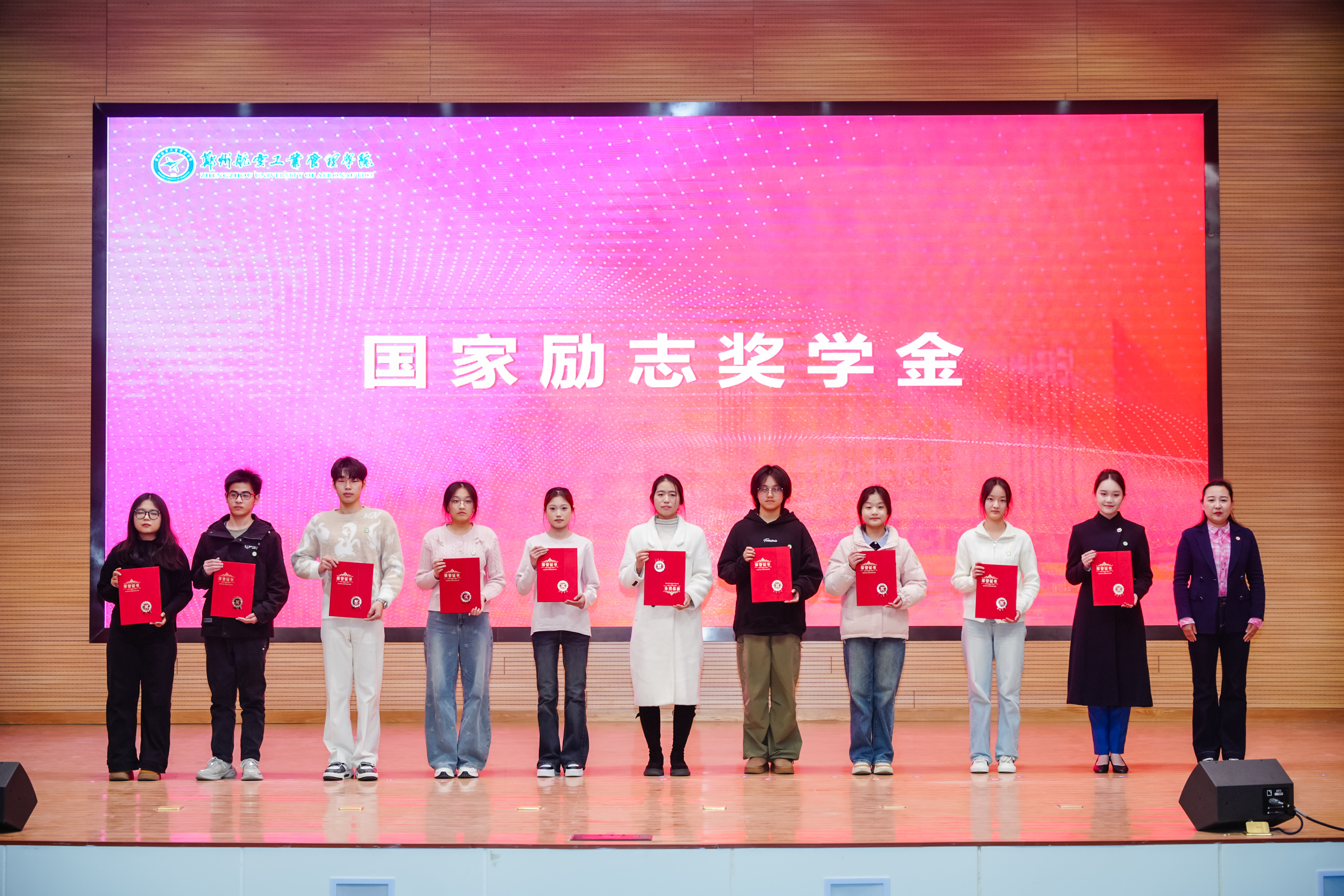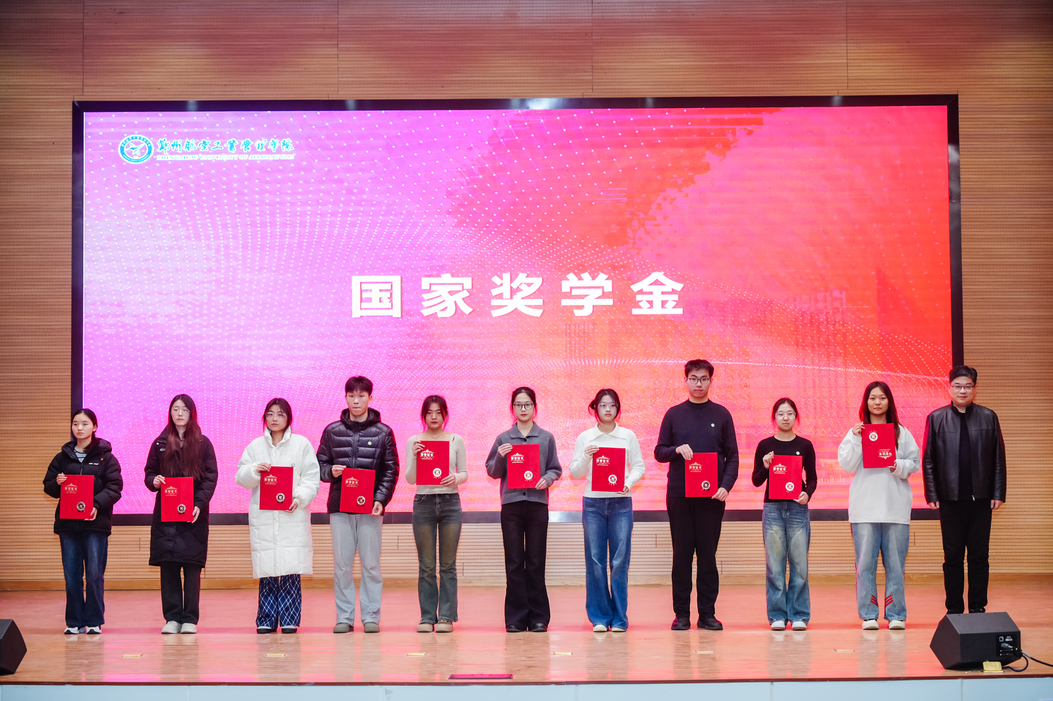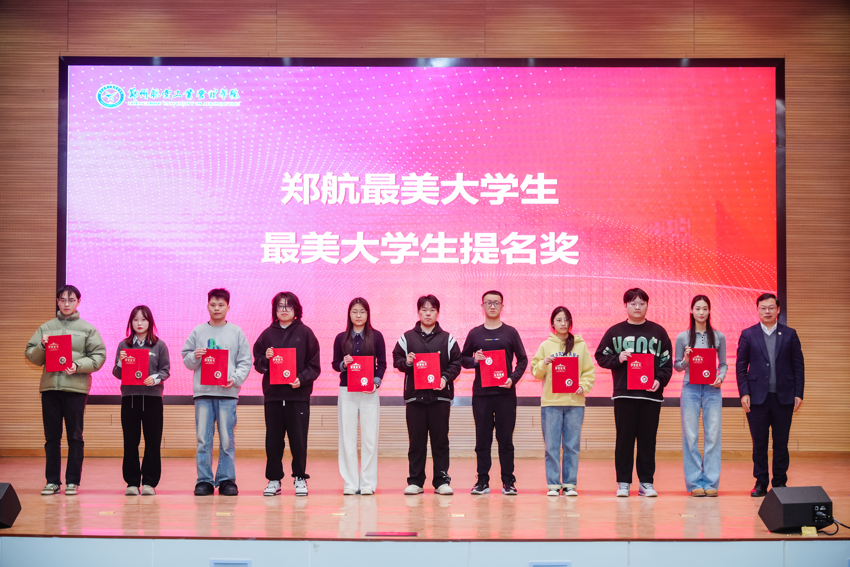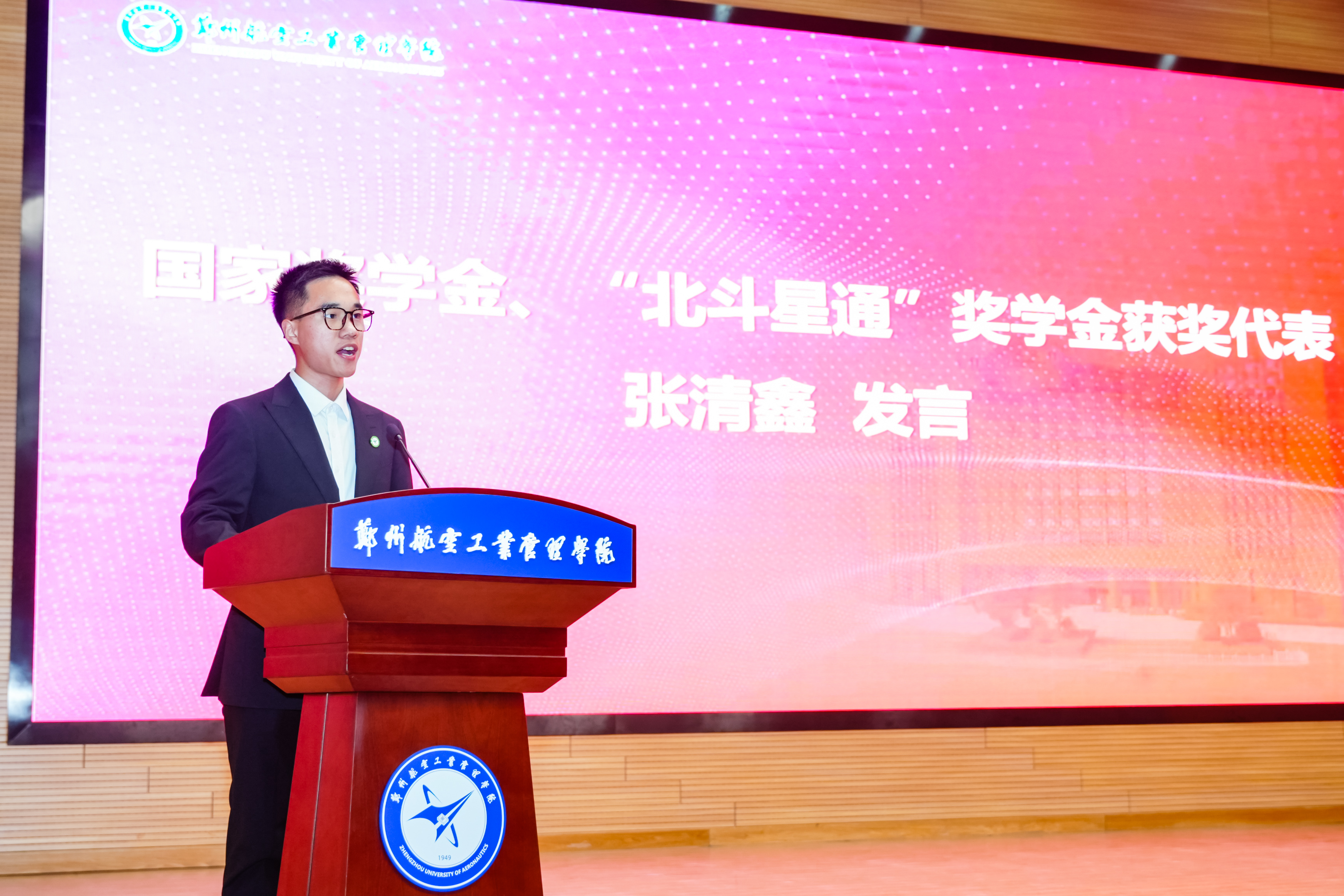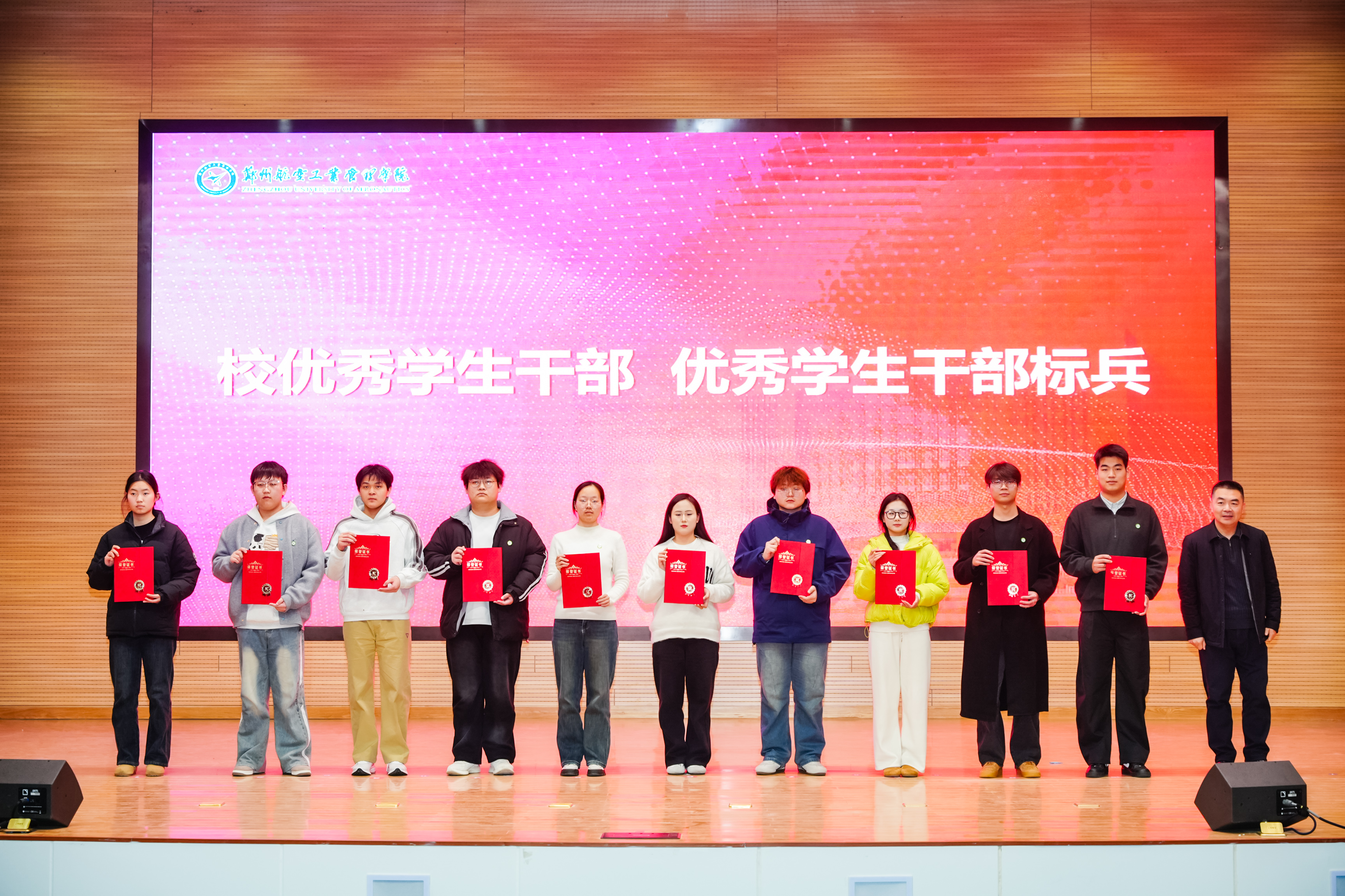 校党委副书记李广锋在致辞中对受表彰的先进集体与优秀个人表示热烈的祝贺,向长期坚守在学生工作一线、为学校人才培养辛勤付出的全体学工同仁表示崇高敬意,向长期情系空天教育、鼎力支持学校发展的爱心企业表示由衷感谢。他指出,学校正处在全力推进更名郑州航空航天大学的关键历史阶段,更需凝聚共识、汇聚合力,以更高的标准、更实的举措、更强的担当,推动学校各项事业迈上新台阶。他希望全体同学立空天报国之志,练实干笃行之能,怀感恩奉献之心,做堪当大任的时代新人;希望全体学工队伍坚守初心使命,筑牢学生成长根基,主动拥抱时代变革,做立德树人的育人先锋;希望各企业一如既往支持学校发展,进一步巩固和扩大校企合作成果,携手共育时代新人,为国家航空航天事业和区域经济社会高质量发展提供人才和智力支撑。