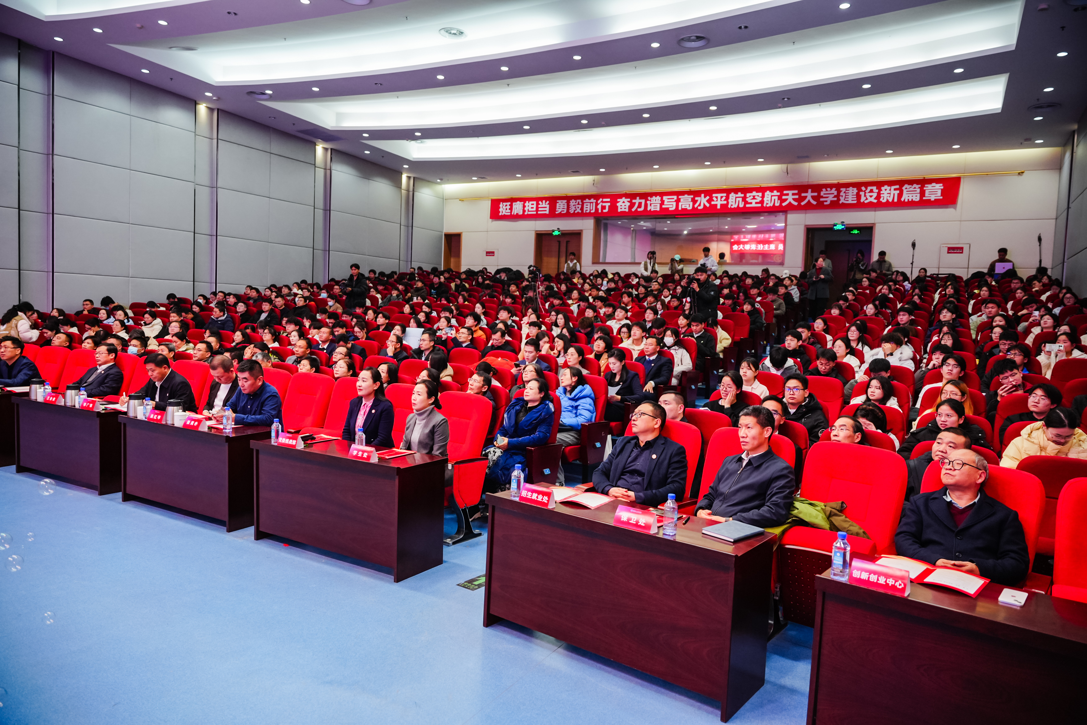 党委学工部等相关单位负责人、辅导员和学生代表共500余人参加会议。
