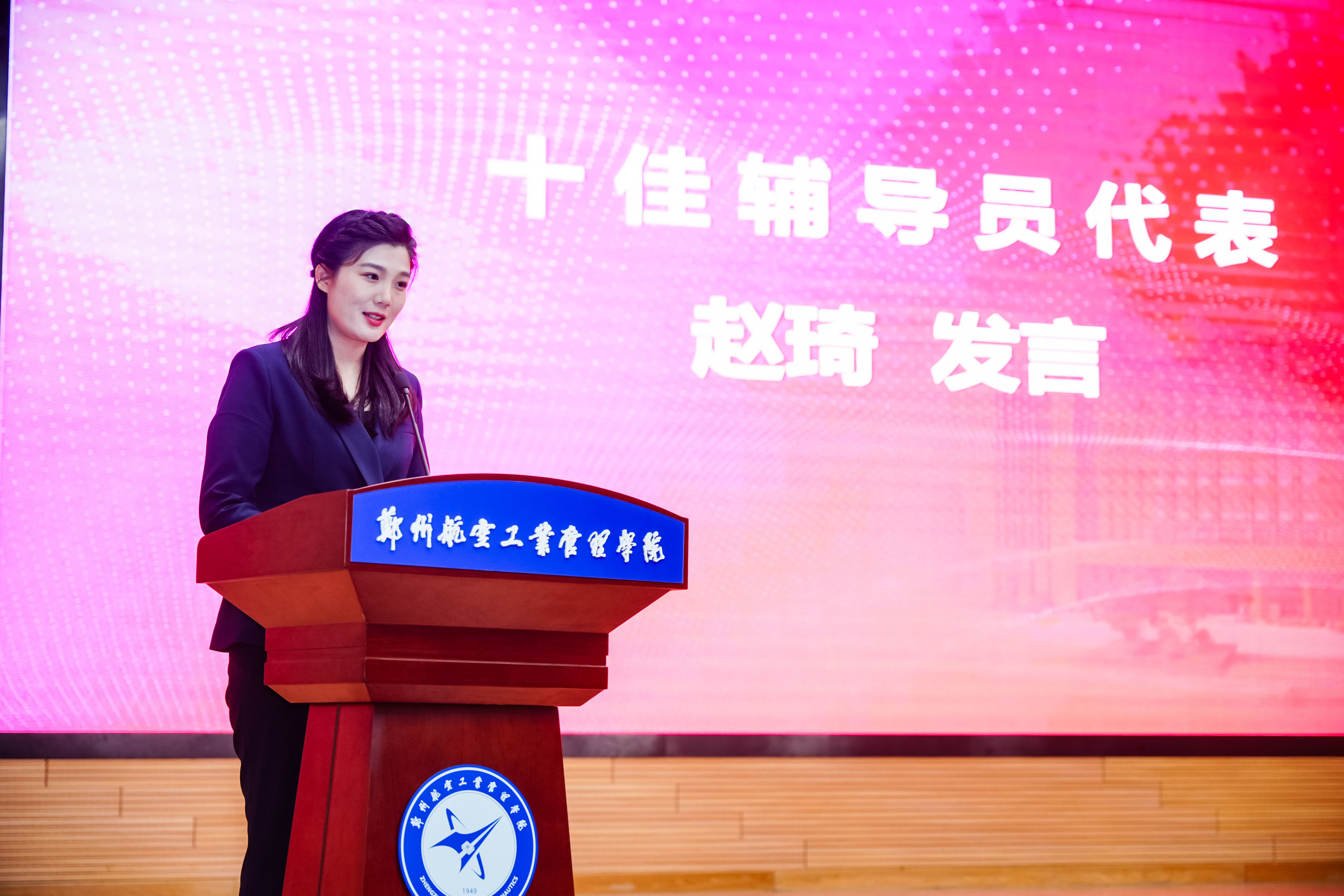 “十佳辅导员”荣誉称号获得者赵琦作为获奖辅导员代表发言。她表示,学校始终将辅导员队伍建设放在心头、落在实处,从制度保障到成长赋能,从搭建学习交流平台到营造干事创业氛围,真正实现了“严管凝聚力量,厚爱激发担当”,未来将以更饱满的热情、更扎实的作风,共同守护青春、滋养青春,为郑航学子的翱翔之梦保驾护航,为学校发展贡献辅导员队伍的坚实力量。