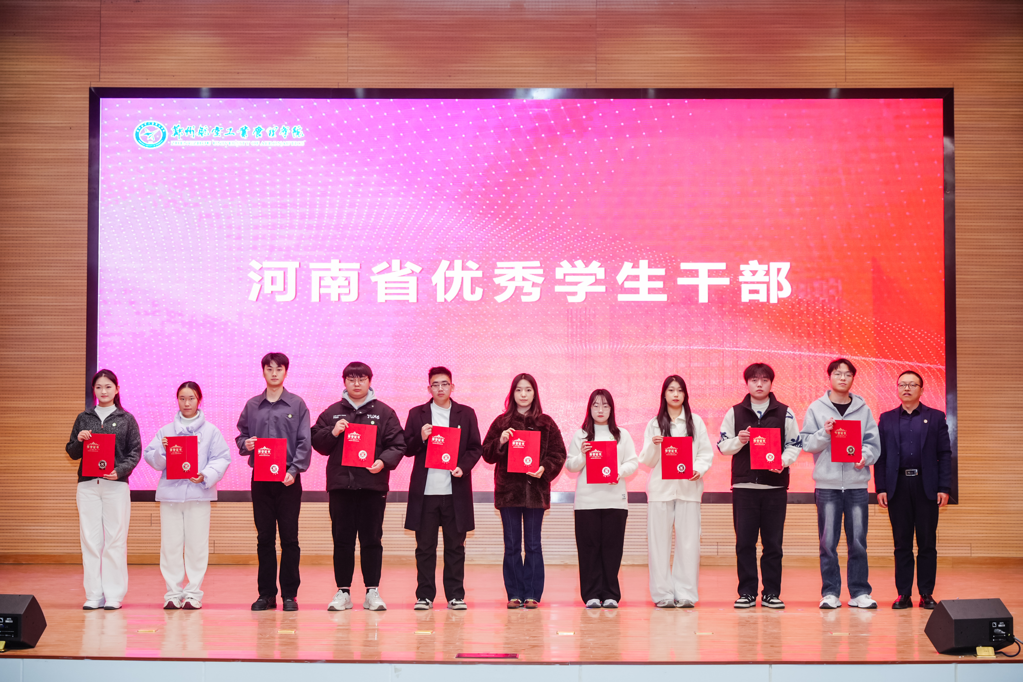 12月30日,郑州航院举行2025年度学生先进集体、个人暨十佳辅导员、班主任表彰大会。校党委书记王全良、党委副书记李广锋、副校长程骄杰出席典礼。海克斯康大中华区教育生态事业部总经理孙东辰,北斗星通导航芯片事业部总经理吴红甲、副总经理张宪朴等企业代表应邀出席大会。