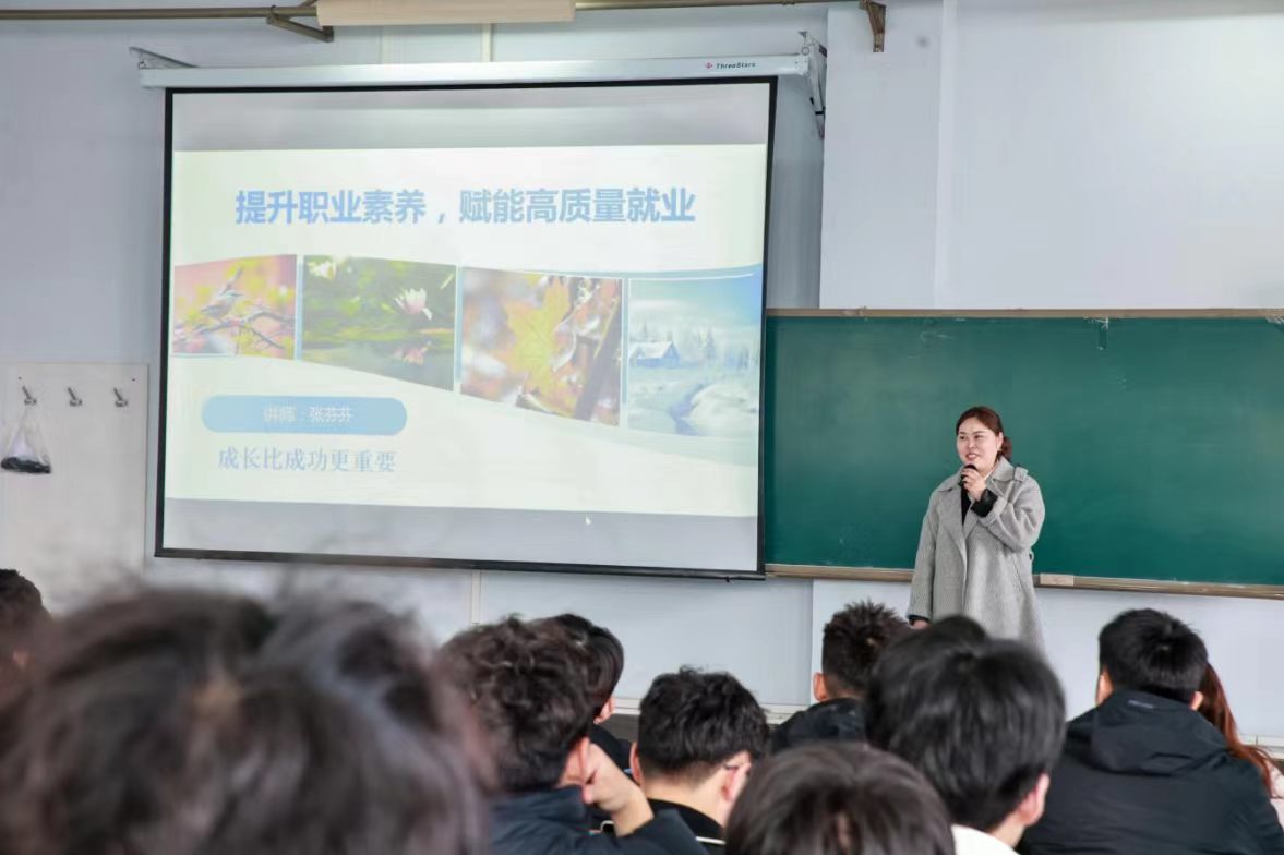在职业素养方面,张芬芬梳理了心态、思维、能力、执行与自我管理五大核心素养,提出“认知—练习—反馈”三步走路径。她还分享了简历数据化撰写、面试STAR法则、薪资谈判技巧,梳理了体制内、市场就业、创业与深造四大方向的真实用人需求,帮助同学们完成从学生思维到职场思维的转换。