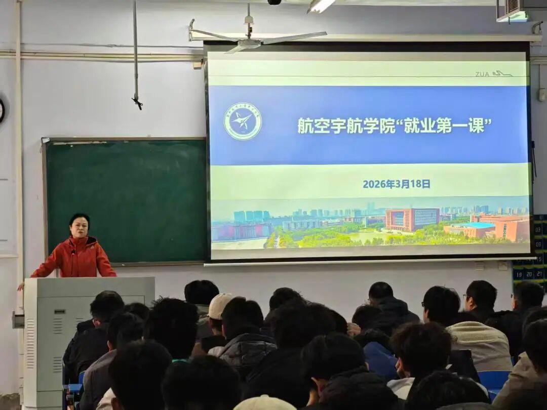 3月18日上午,航空宇航学院在05B102教室为2026届全体毕业生开讲就业升学“开学第一课”,学院党委书记吴琳芳、院长王晓璐分别授课,为毕业生就业进行专题指导。