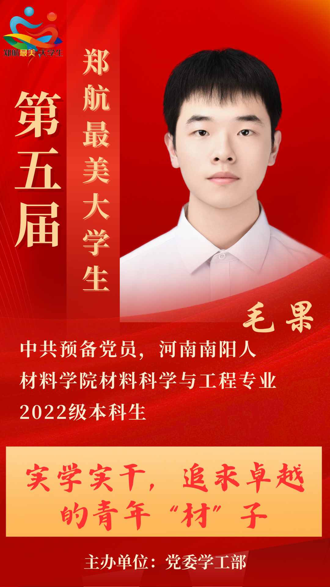 今天,让我们一起领略第五届郑航“最美大学生”之材料学院毛果的青春风采吧!