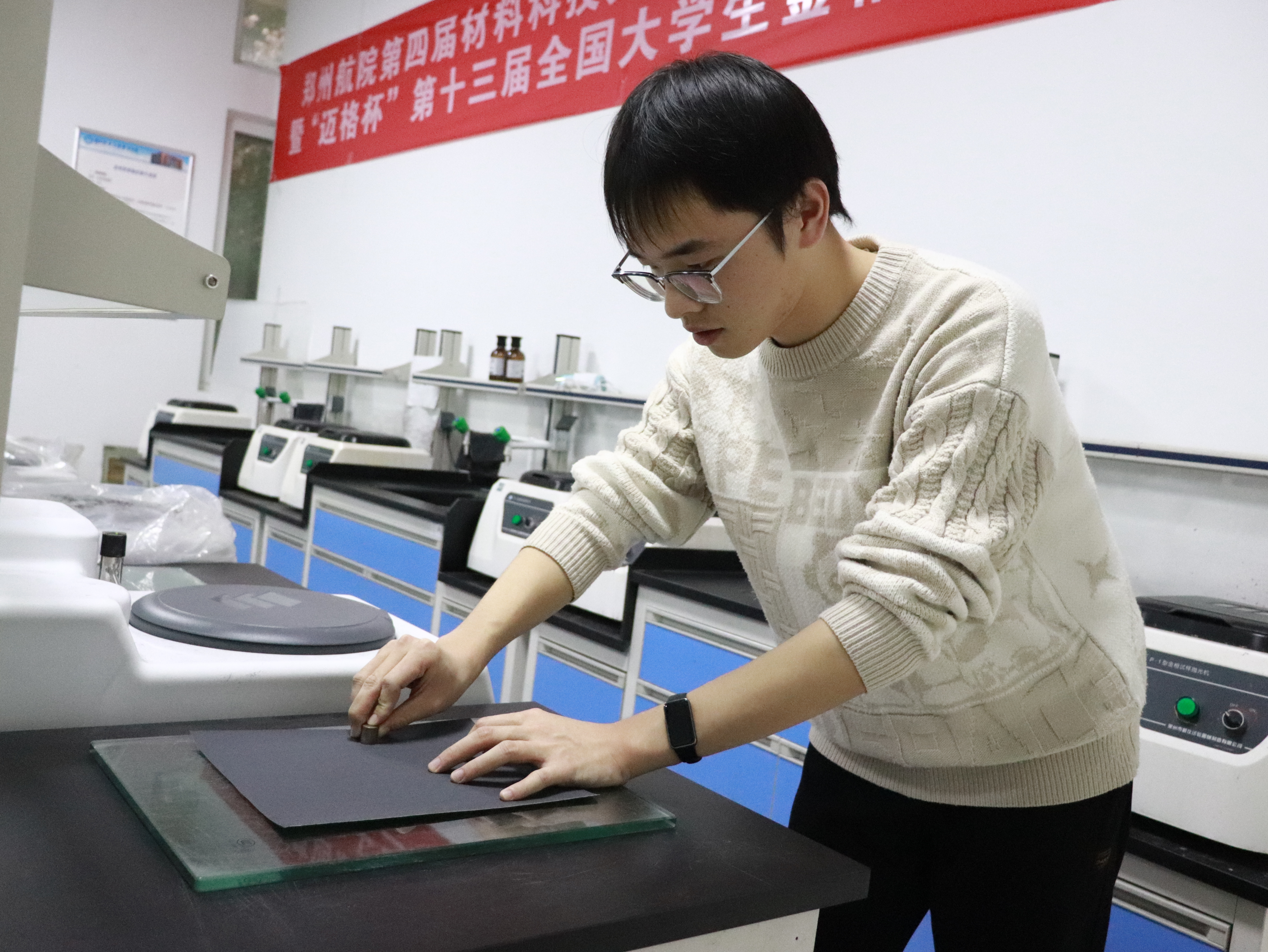 2023年3月,金相技能大赛校内选拔赛拉开序幕。每天晚上下课后,毛果便到实验室开始数万次的磨样,不断思考磨抛方法,寻找着金相当中的无限奥秘。在校内预选赛时,面对数百名参赛选手,他稳定发挥,最终通过层层选拔,成为了全校唯一一个获得省赛资格的大一新生。