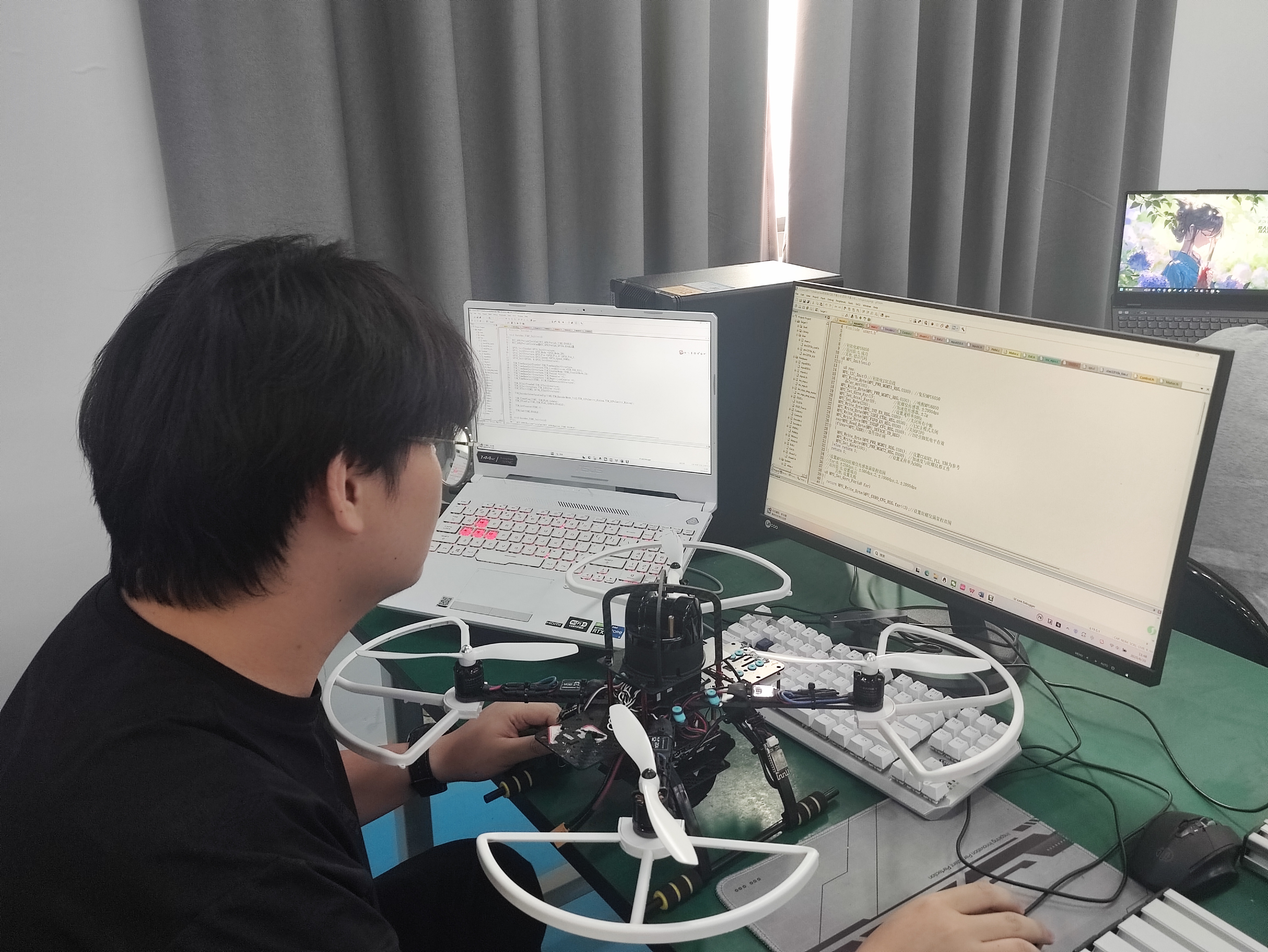 怀揣着对无人机的向往与热情,他积极踊跃加入无人系统科创实验室。在这片充满挑战与机遇的天地里,他向实验室内的各位老师和学长虚心求教,制造了基于STM32的智能遥控小车与蓝牙平衡小车,深入探索了3D建模及打印、绘制小型无人机PCB板并自主焊接,ROS系统自主飞行无人机技术,以及视觉处理等前沿科技领域。凭借对知识的渴求与对技术的热爱,作为实验室核心成员的他带领团队参与多项竞赛,每一步探索都凝聚着他的辛勤汗水与卓越智慧,展现了他在大学生科技创新道路上的不断前行与突破。
