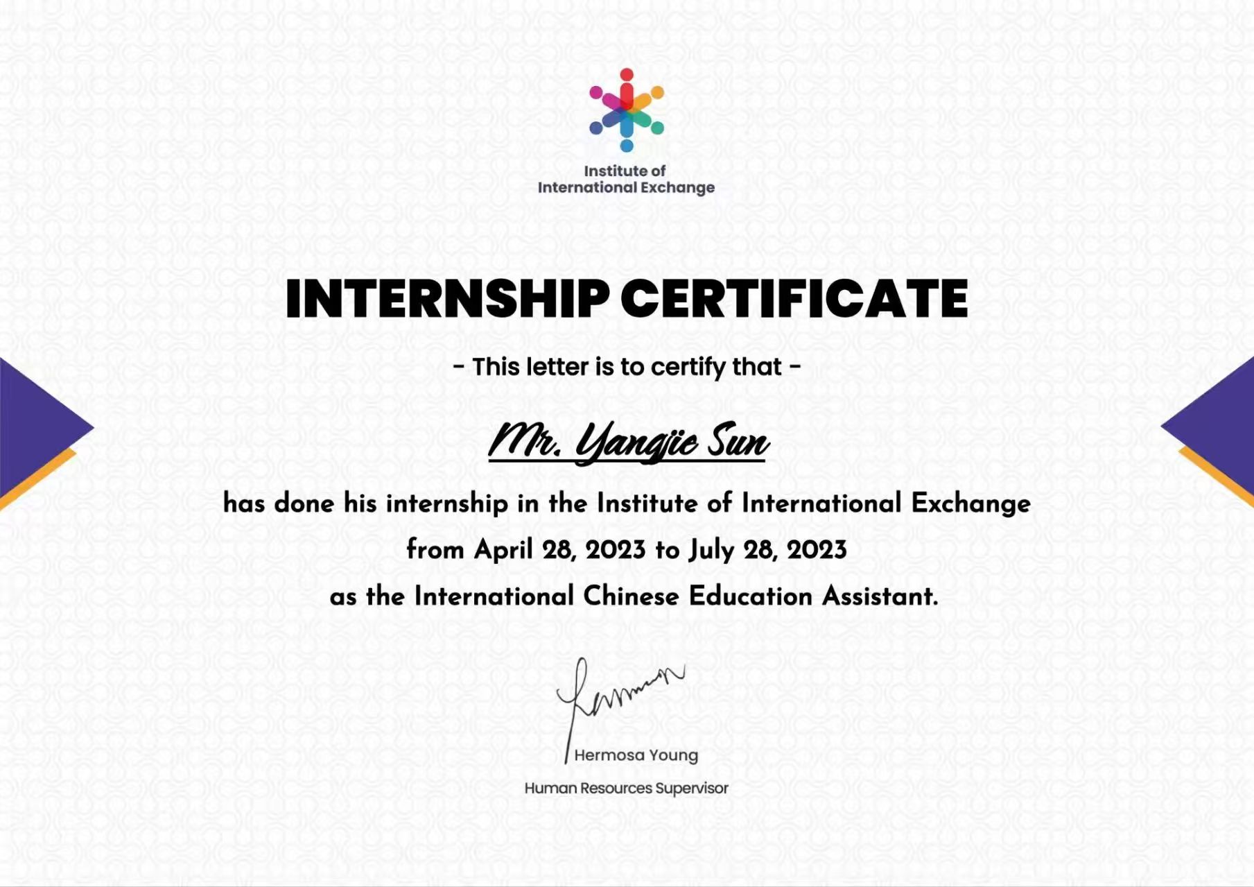 孙扬杰积极拓展国际视野,在国际交流研究院(IIE)担任汉语国际助教,累计教授外国学生百余人次。他主动策划并组织了与哈萨克斯坦国立大学汉语专业学生的线上文化交流会,有效促进了两国青年间的相互理解,在助力汉语国际推广的同时,也生动传播了中华优秀传统文化。
